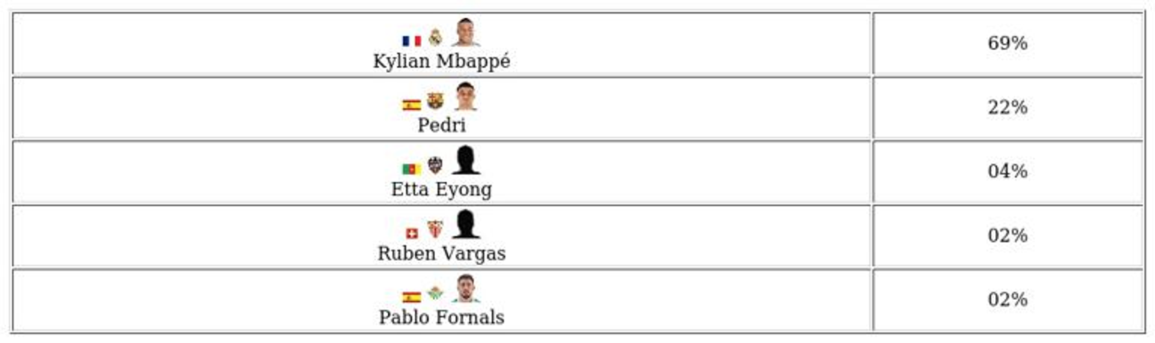 • Every month, EA evaluates individual statistics to select the top La Liga performers. These shortlisted players become nominees for the POTM award.
