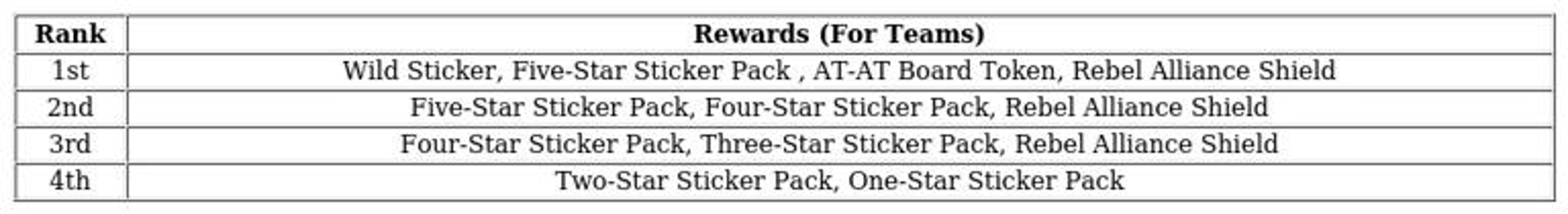 However, situations may arise where two or more teams achieve identical total points. In such cases, the game developer, Scopely, adopts a generous approach to tie situations. Instead of splitting the rewards, both teams sharing the same top score are awarded the highest possible prizes. For example, if both teams finish with 30 points—the highest score—each will receive the full set of top-tier rewards, including the exclusive mega prize, wild sticker, At-At board token, Rebel Alliance shield skin, and a purple sticker pack.
